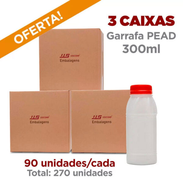 R$193,33 no pix R$203,50 Em até 2x de R$101,75 sem jurosCombo 3 Caixas Garrafa PEAD 300ml Quadrada com Tampa de Rosca