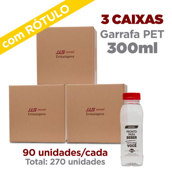 Combo 3 Caixas Garrafa Pet 300ml Quadrada Família com Rotulo e Tampa